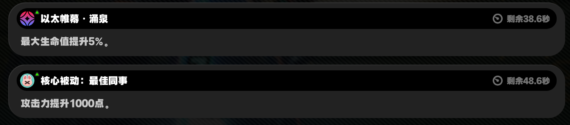 ③其次全队加攻、全队生命值提升,以及在开启/延长[以太帷幕]时,爆伤提升均能做到常驻,补充了多拐力乘区。