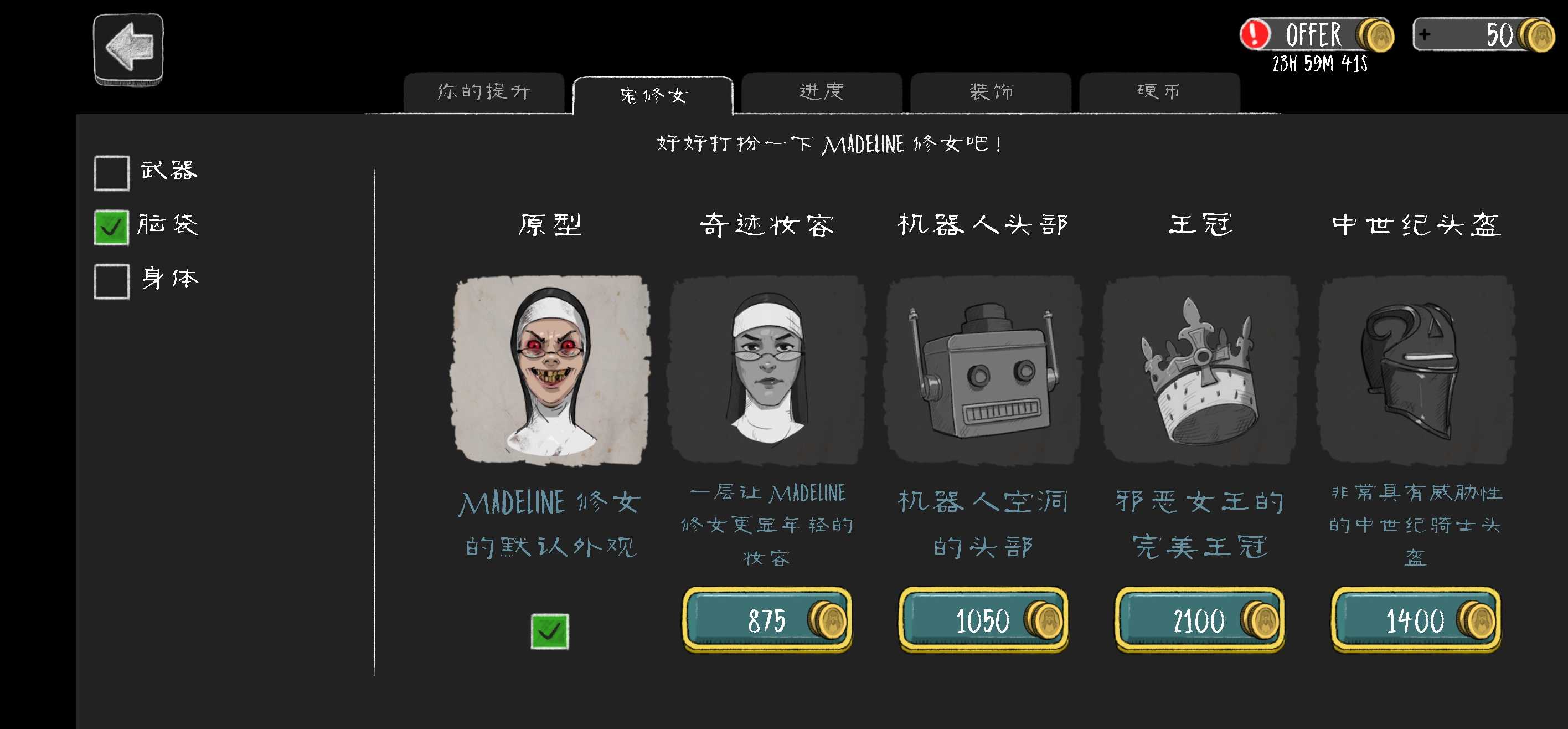 邪恶修女1.8.6新版本原版,官方2021年发布的最新原版,比无限金币更有回味,没有无限金币更加紧张!温馨提示:躲在其他的人一柜子当面都会被抓住,但是躲在一开始的房间的柜子,即使被看到也不会被抓